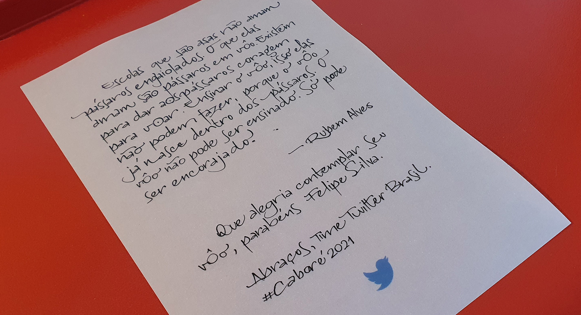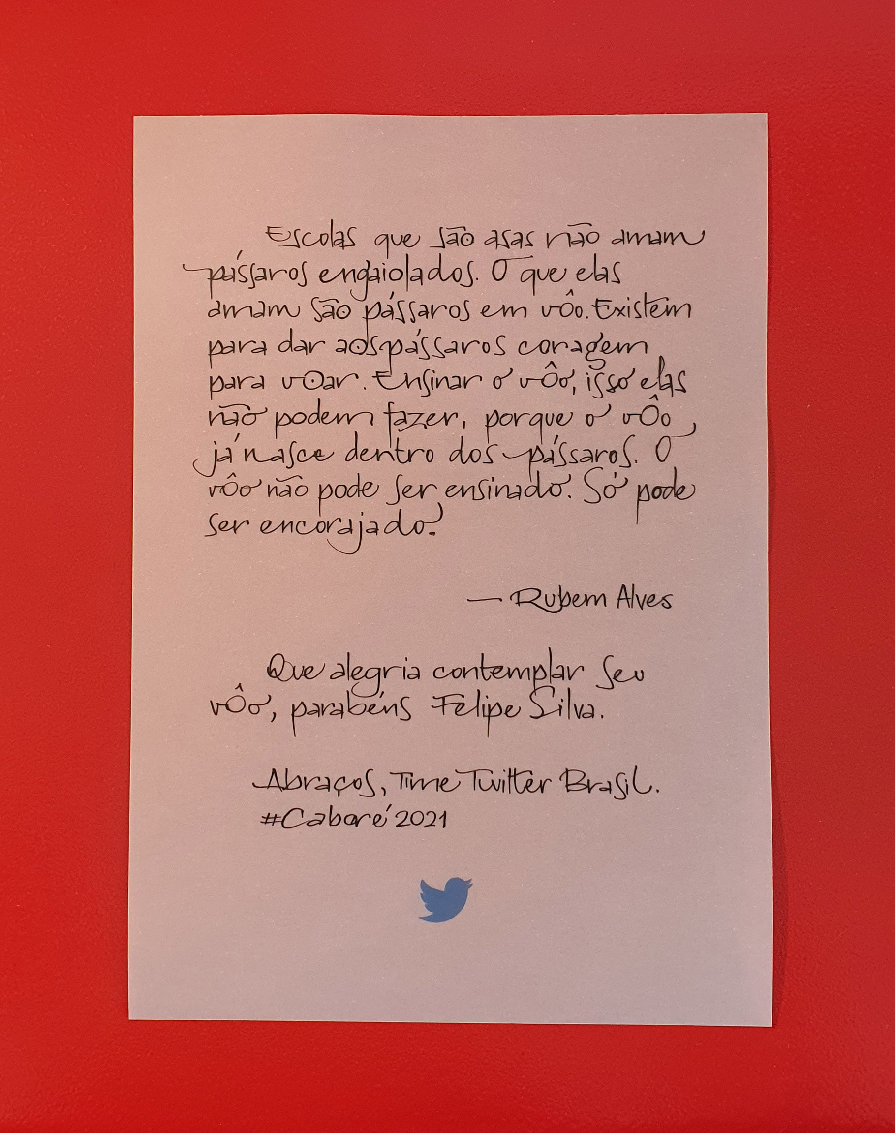 um texto de Rubem Alves. As cartas foram destinadas à todos(as) indicados(as) ao prêmio Caboré 2021. Eu simplesmente amei fazer este trabalho.
