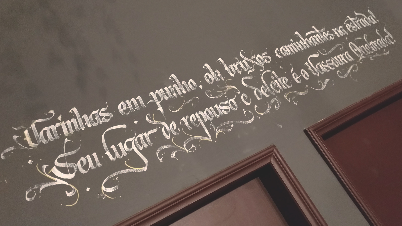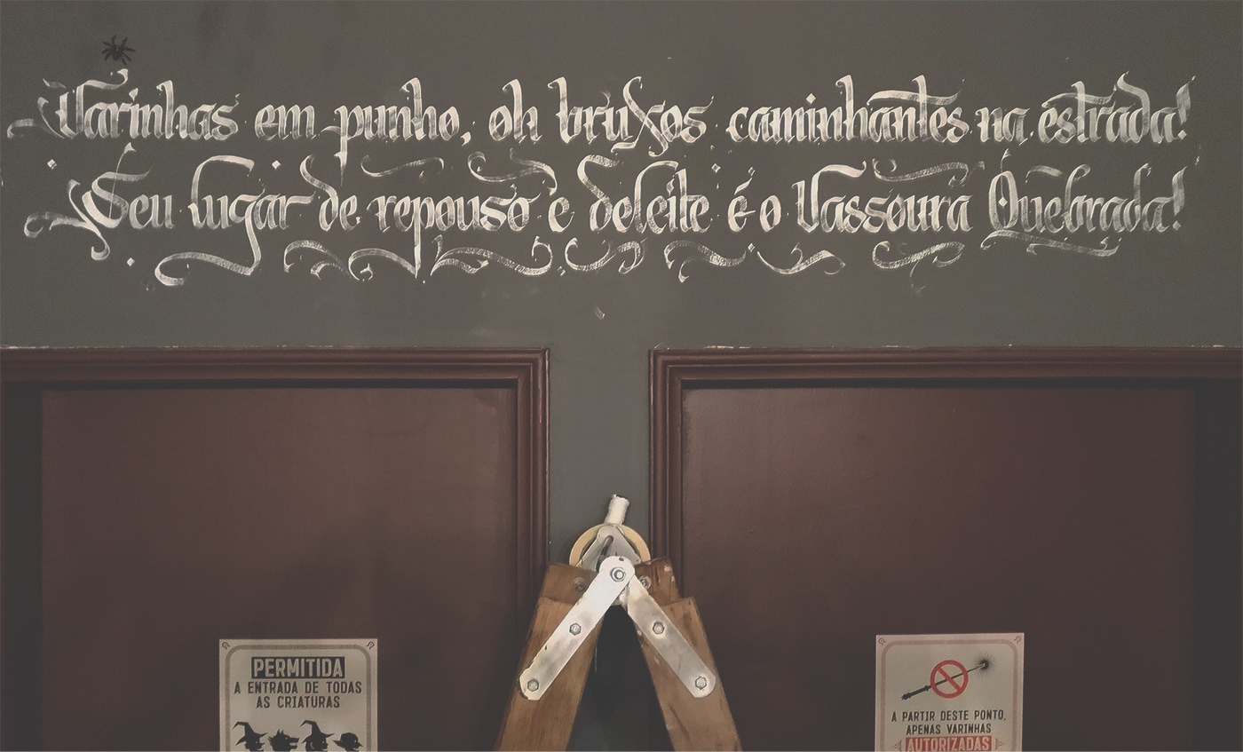 Pintura de letras em restaurante temático do Harry Potter em São Paulo